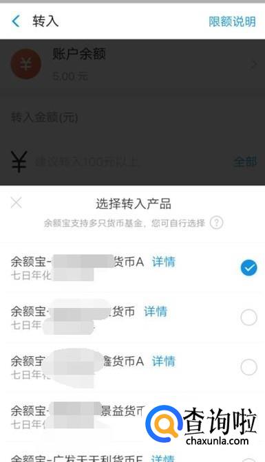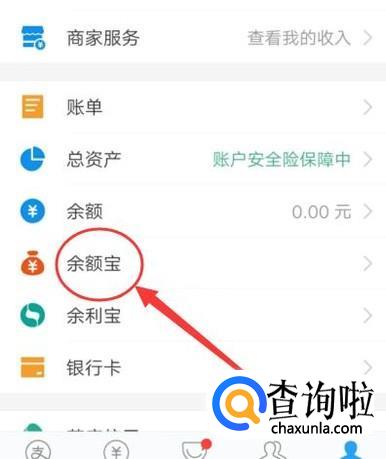 进入之后,点击“余额宝”进入下一页面,如图所示。