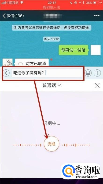 然后说出你想要聊天内容并点击完成,如下图所示。