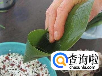 最后把泡好的糯米控干水分后加入碱面搅拌均匀后,用粽叶把糯米包裹好用粽绳固定好就可以了。