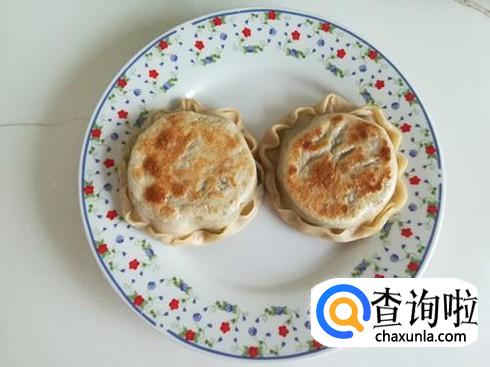 然后把面饼铲出,放入盘子里,这样花边猪肉韭菜馅饼就做好了。
