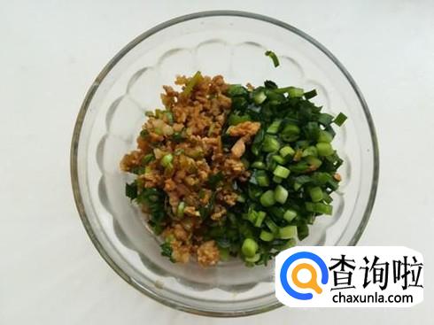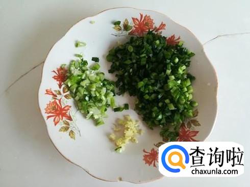 把韭菜择好洗净切成碎粒,葱切葱花,姜切成末。