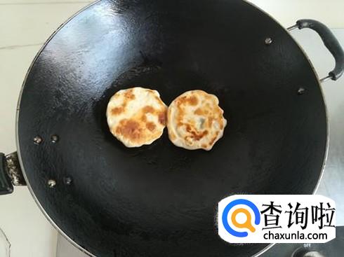等面饼烤的起泡是,翻面烤制另一面,直至把面饼的两面烤成金黄为好。