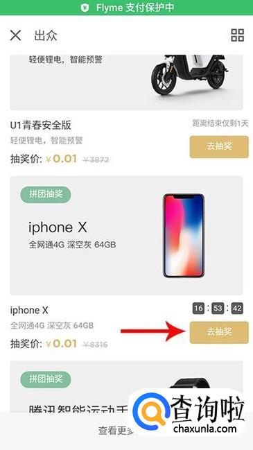 进入参与界面,除了手机之外还有很多产品都能够进行抽奖,点击“去抽奖”