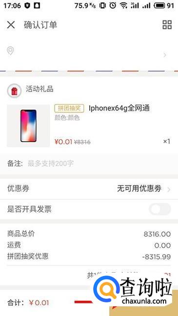 进入确认订单界面,查看商品信息以及收货信息,确认之后点击“去付款”