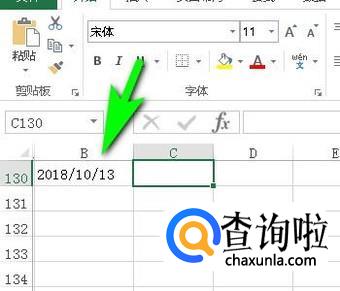 按回车键,即可得到当前日期,比如,今天是2018年10月13日,那么,B130单元格即显示出今天日期。