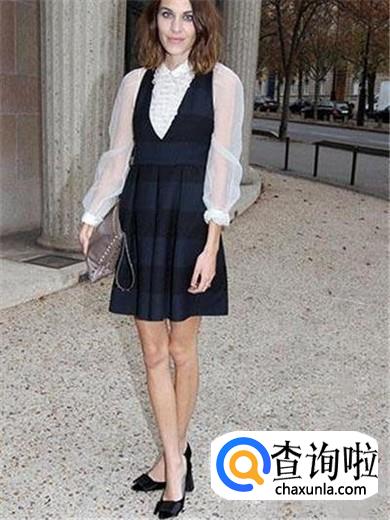 深色背带裙给人以庄重大方的感觉,而且短款深色背带裙,显得腿长人也瘦,再加上高跟鞋,更能增加修长的感觉,所以,身材短小的女孩特别适合这么穿,而且还能穿出一种职业女性的风格。