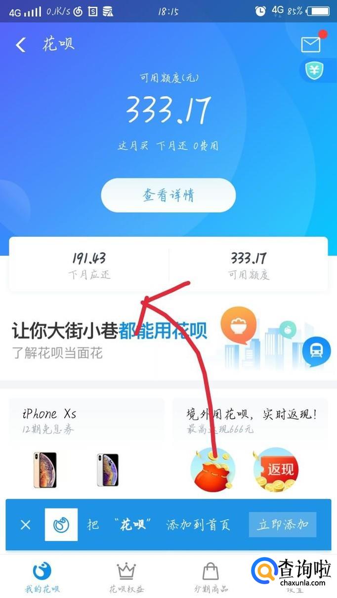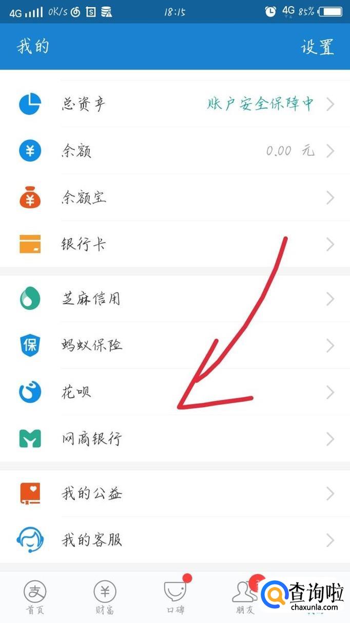 向下滑动手机,点击“花呗”选项,如图1箭头所示。会出现一个新的界面,如图2所示。
