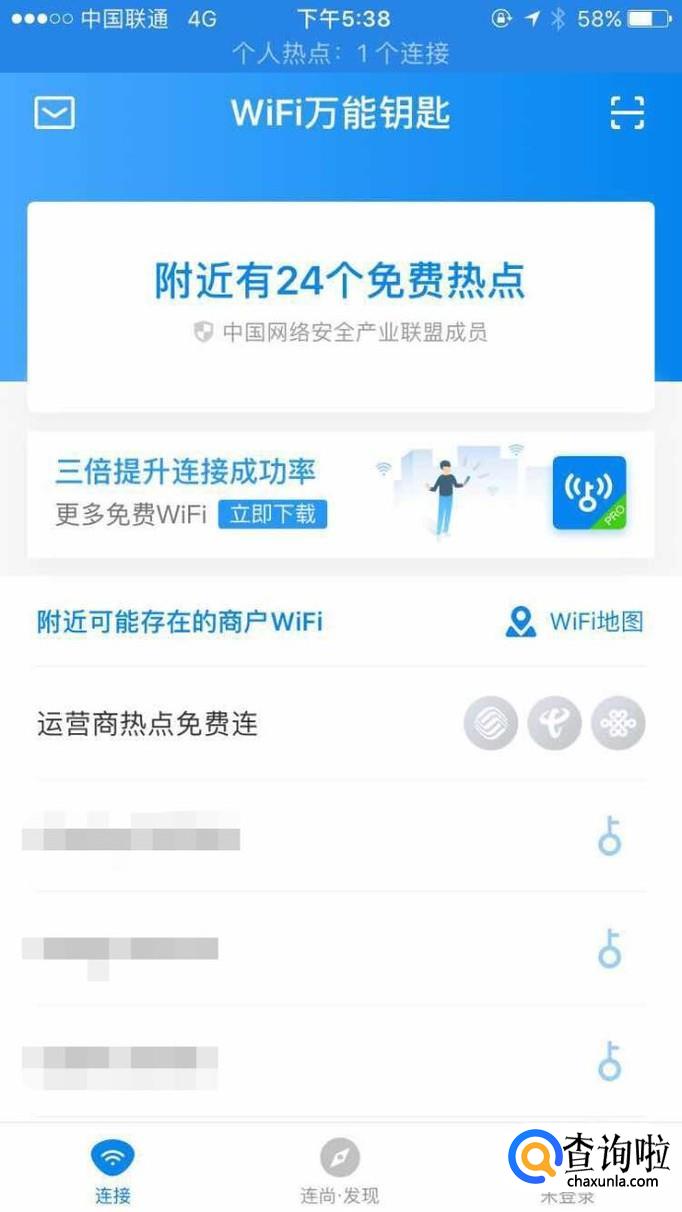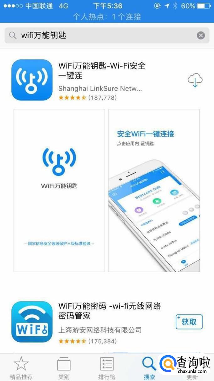 这里我用手机在应用了搜索了Wifi万能钥匙APP。
