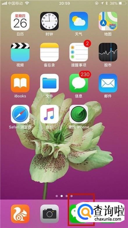 首先在我们的手机桌面上找到微信并点击它,如下图所示。