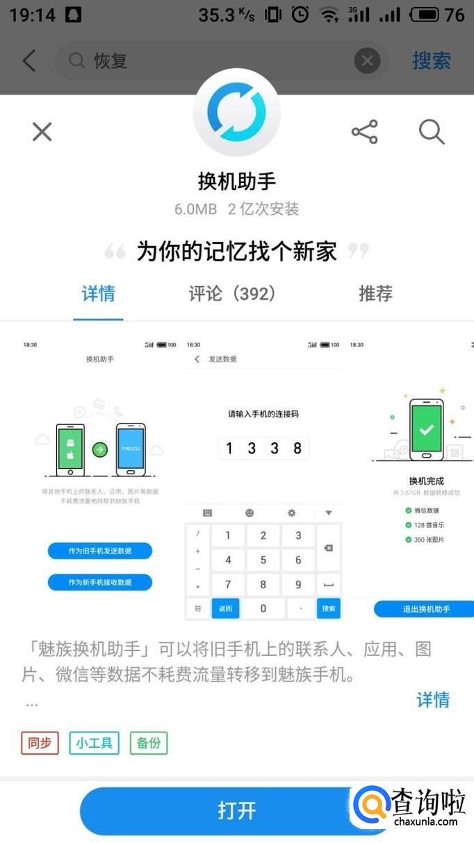 如果你是魅族手机的话,你可以直接在应用商店下载换机助手,能够免流量直接快速转移恢复数据。