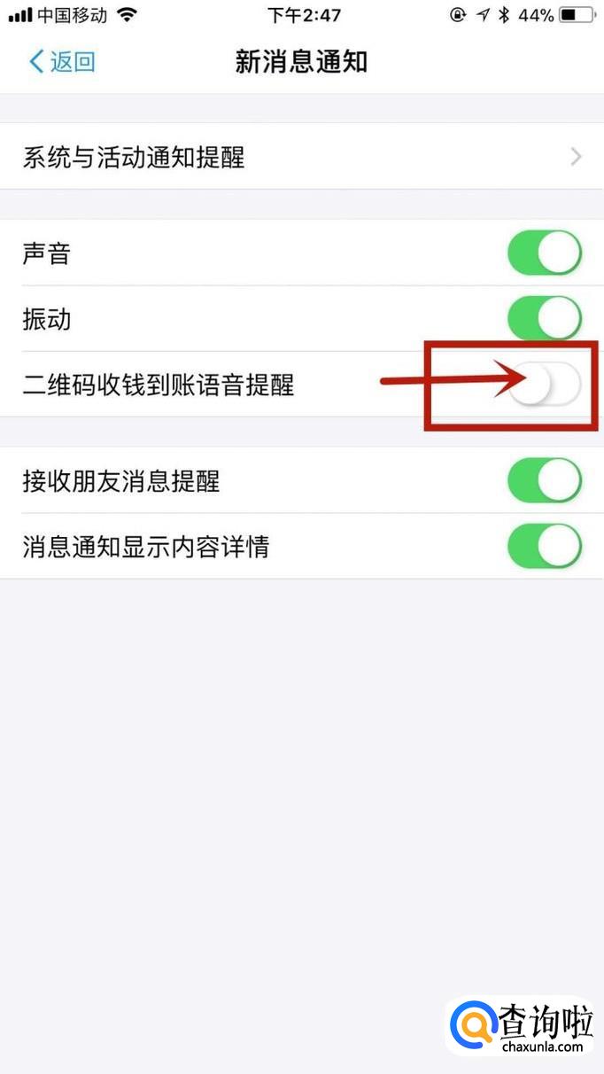 最后点击开启二维码到账语音提醒开关就可以了。