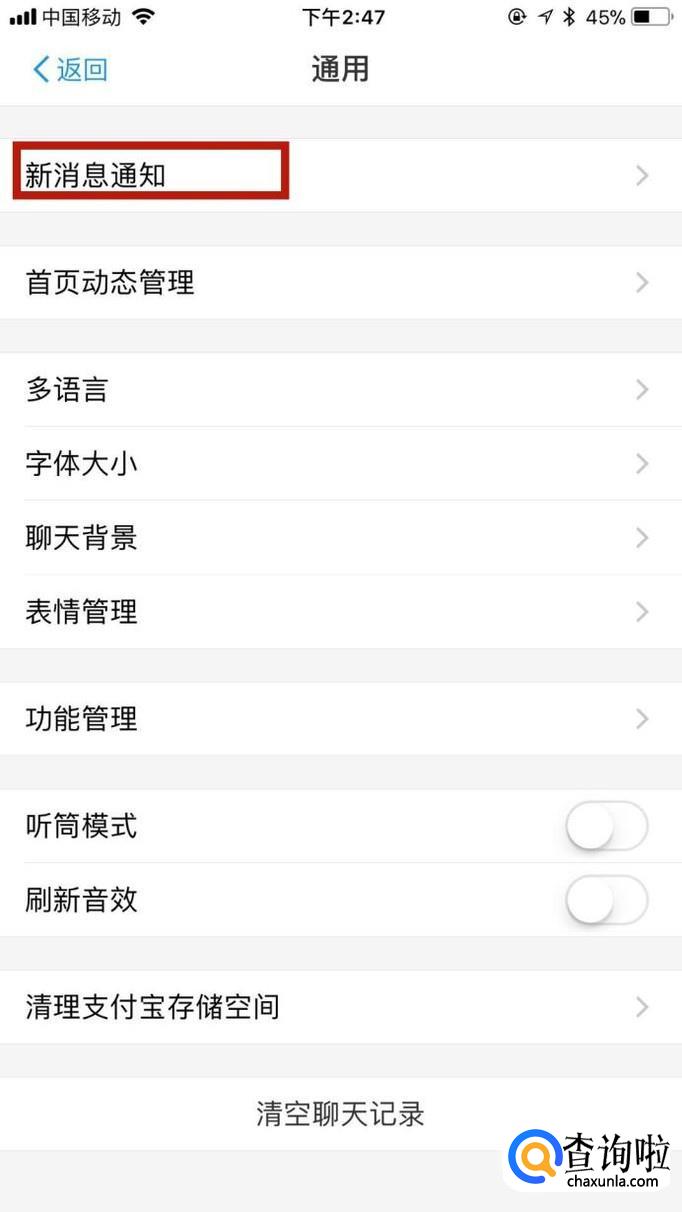 接着点击新消息通知,如下图所示。