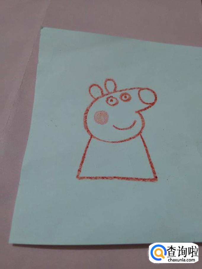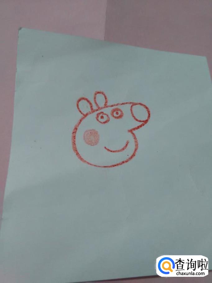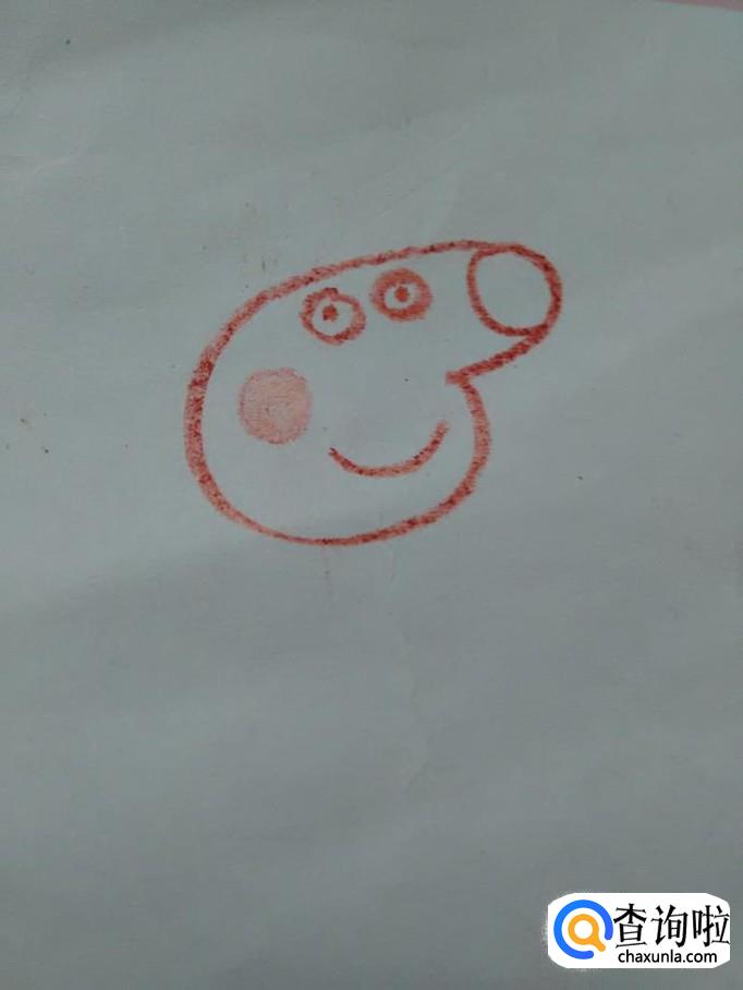 画小猪佩奇,要画出小耳朵、吹风机一样的头、红脸蛋、细小的胳膊和腿、小尾巴。下面就来画小猪佩奇。