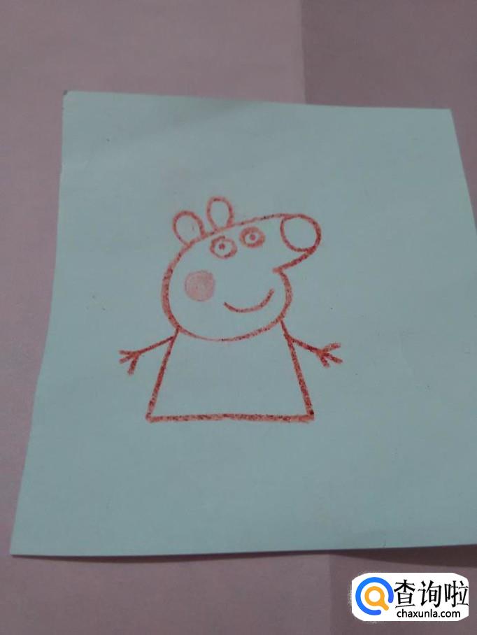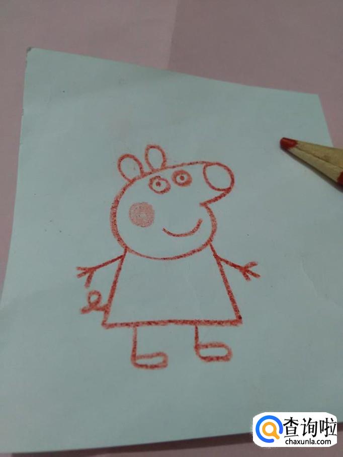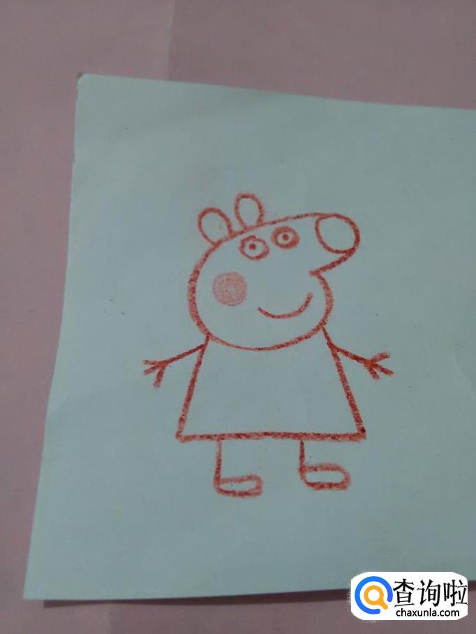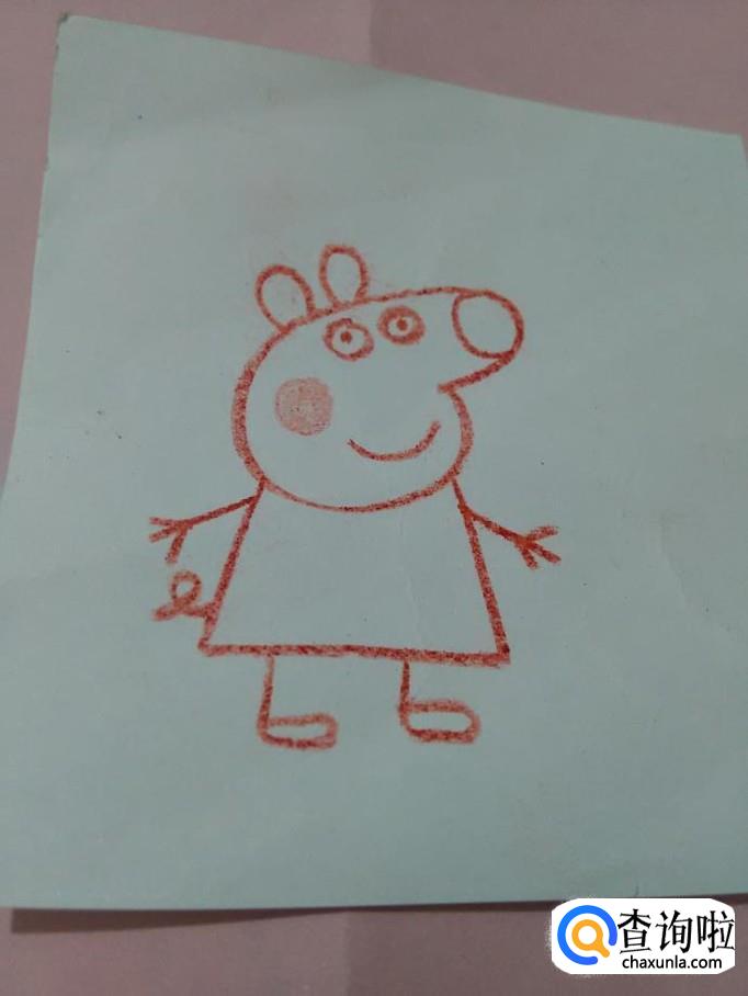 最后,在身体左侧,画一条短短的曲线,表示尾巴。小猪佩奇就画完了。