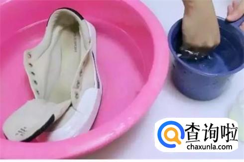 如果是真皮的球鞋,自动忽略这一步。白醋加清水,百度稍微浓一些,然后把球鞋浸泡进去半小时,这样刷洗出来的球鞋绝对干净。