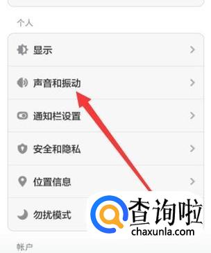 进入之后,找到“声音和振动”,点击并进入,如图所示。