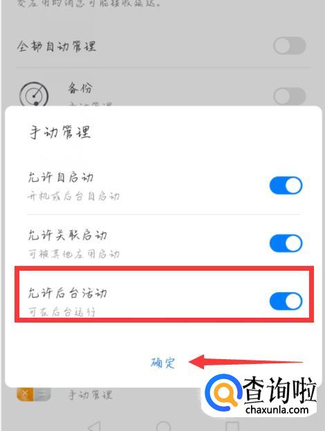 然后选择最下面的“允许后台活动”让其开启。