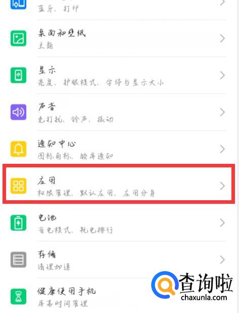 进入设置找到应用点击。
