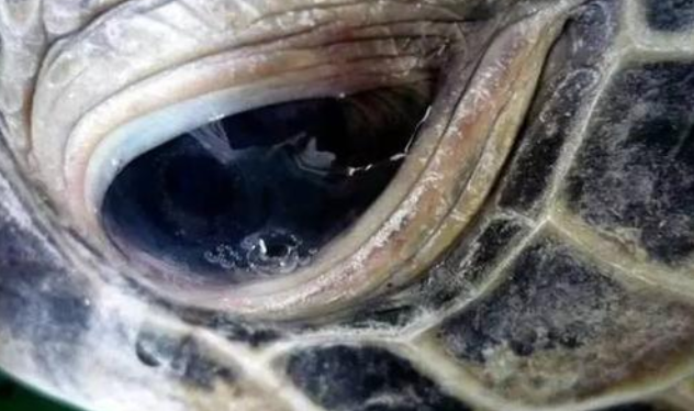 海龟流泪时,清清的眼泪从眼睛中缓缓流出,顺着眼角一直向下流。这是喜悦的泪水还是悲伤的泪水,抑或是海龟眼睛里面进入了小沙粒,需要用眼泪把它们冲刷出来?