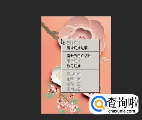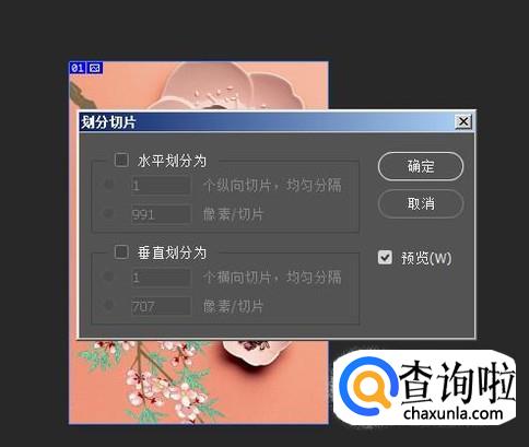在右键菜单这里点击“划分切片”;随即弹出一个对话框。