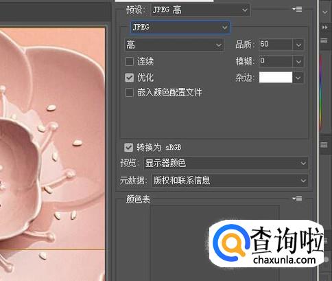 接着,我们按下快捷键:ALT+SHIFT+CTRL+S;调出“储存为web所有格式”操作面板。然后,在这里设置格式为JPEG;然后,点储存,