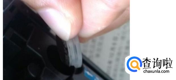 用力捏住塑料塞上的小突出片,慢慢掀开拔出,然后,把废粉从硒鼓中倒出。直到废粉口没有墨粉洒落,把塑料塞盖紧压实。