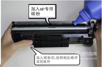 加入HP专用碳粉(注意不要吸入碳粉了)。