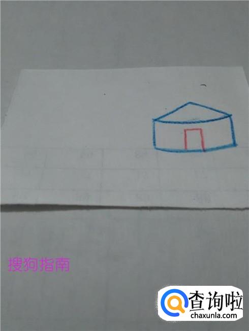 在三角形下面画一个长方形,长方形的底边也要弯一点,表示蒙古包的墙壁。