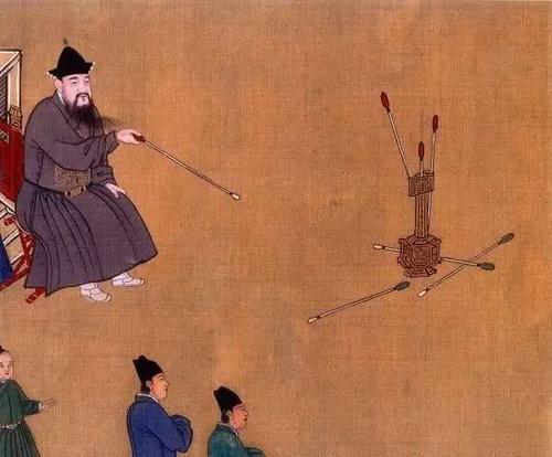 春秋战国时期,诸侯宴请宾客时的礼仪之一就是请客人射箭。那时,成年男子不会射箭被视为耻辱,主人请客人射箭,客人是不能推辞的。后来,有的客人确实不会射箭,就用箭投酒壶代替。久而久之,投壶就代替了射箭,成为宴饮时的一种游戏。