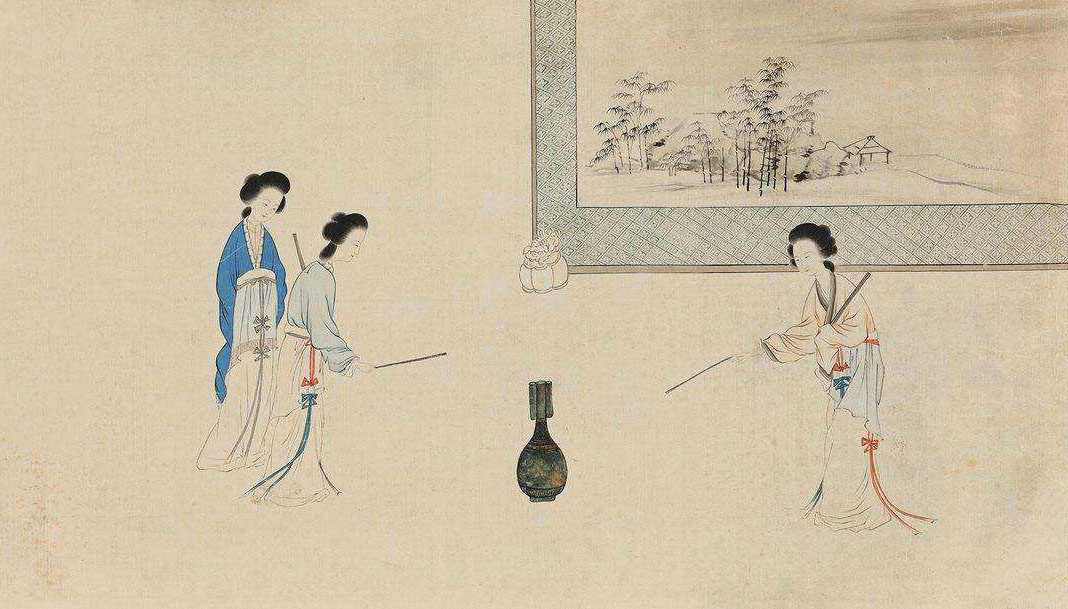 投壶是古代士大夫宴饮时做的一种投掷游戏,也是一种礼仪。投壶是射礼的演变和延续。由于庭院不够宽阔,不足以张侯置鹄;或者由于宾客众多,不足以备弓比耦;或者有的宾客的确不会射箭,故而以投壶代替弯弓,以乐嘉宾,以习礼仪。宋吕大临在《礼记传》中云:“投壶,射之细也。燕饮有射以乐宾,以习容而讲艺也。”