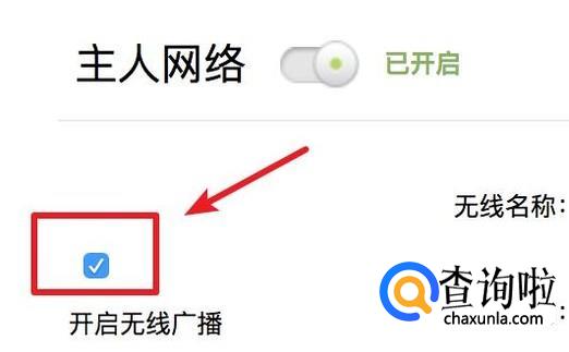 打开后,把‘开启无线广播’的勾选项取消就行了,这样邻居就找不到我们的wifi了。
