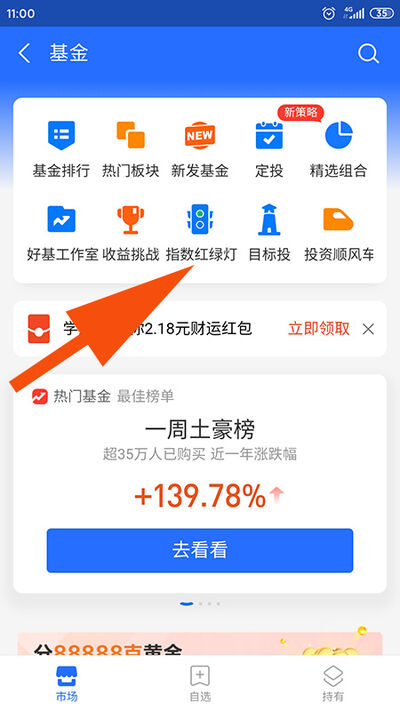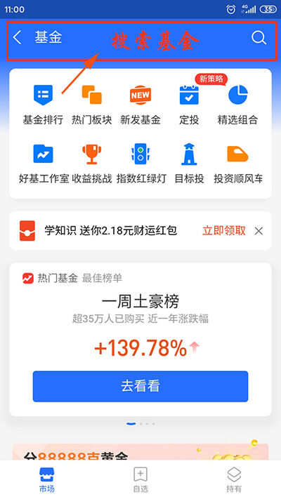 3.支付宝基金的首页有基金排行、热门板块、新发基金、定投等板块,根据自己的需求选择。