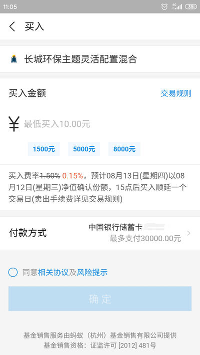 7.进入到基金购买页面后,输入想要买入的金额,点击确定即可。