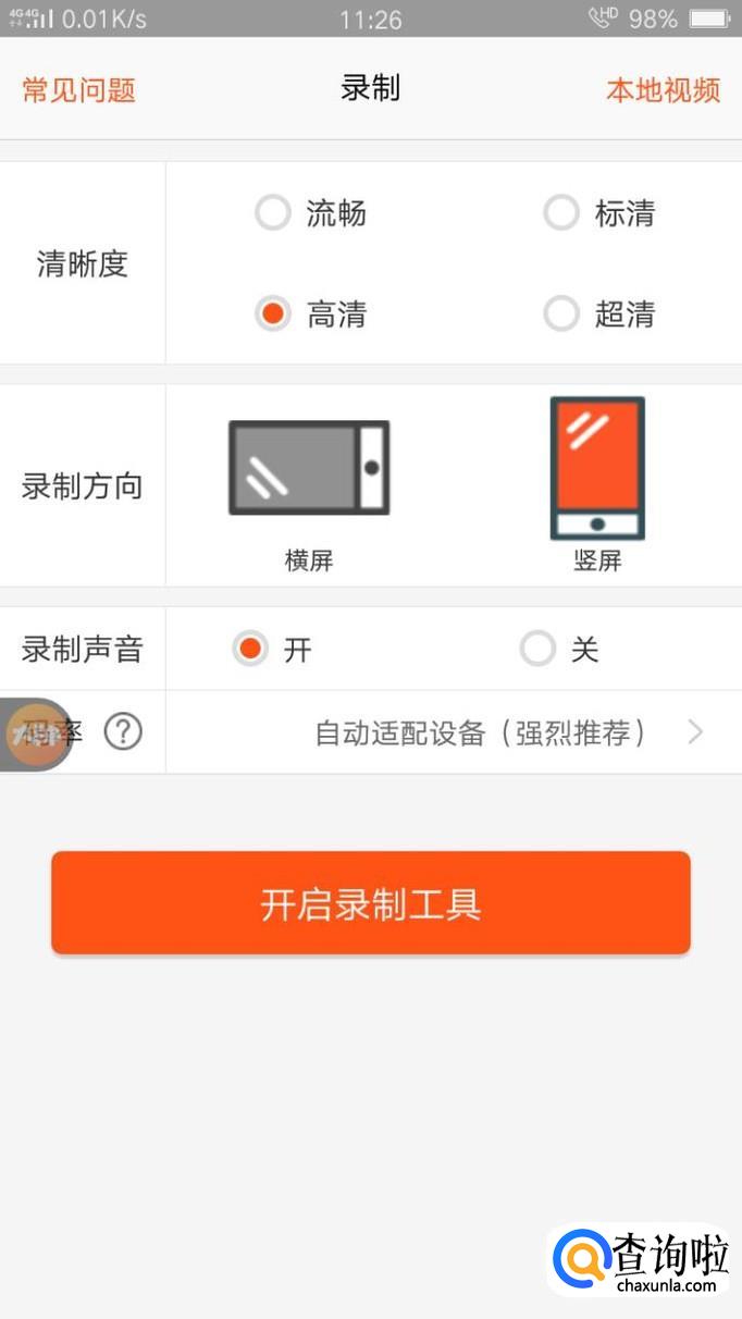 下载后打开,根据需要来设置清晰度、录制方向等。