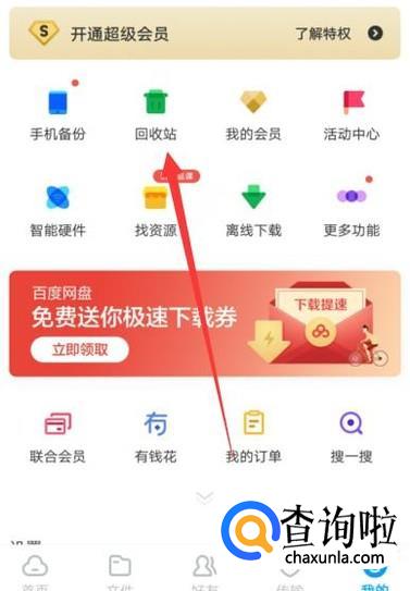 进入之后,点击“回收站”,进入下一页面,如图所示。