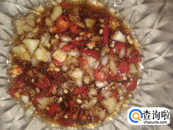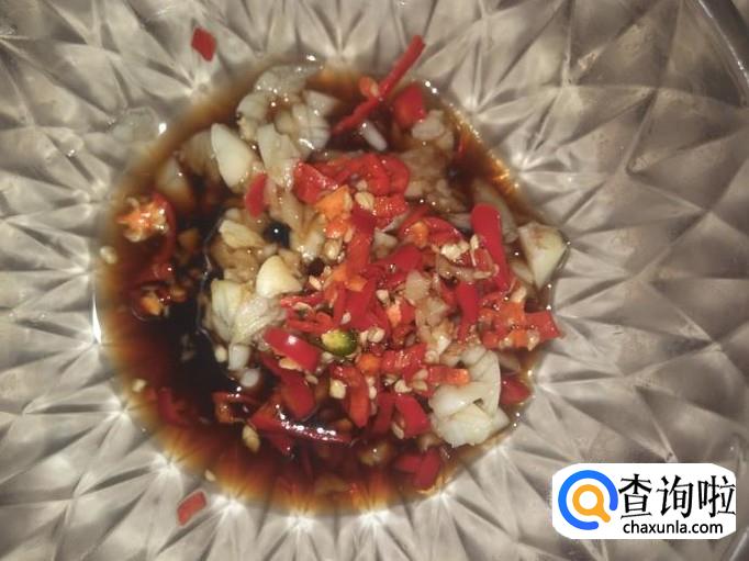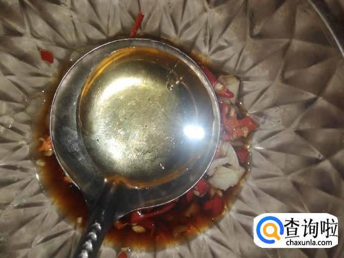 蒜蓉、小米辣混合一起加1勺香油2勺生抽搅拌均匀。