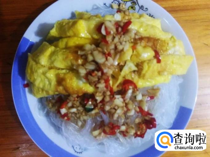 干粉丝100克,鸡蛋2个,蒜蓉、小米辣、2勺生抽。
