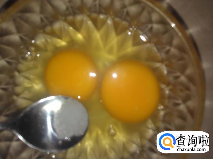 鸡蛋打到碗里,加适量的盐搅拌均匀。