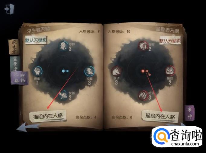 进入到【人格】页面后,如果玩家想要重置求生者的天赋,接着再点击页面左下角的【描绘内在人格】按键。如果想要重置监管者的天赋,则点击页面右下角的【描绘内在人格】按键。