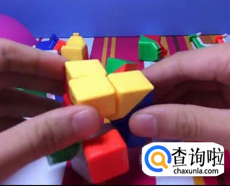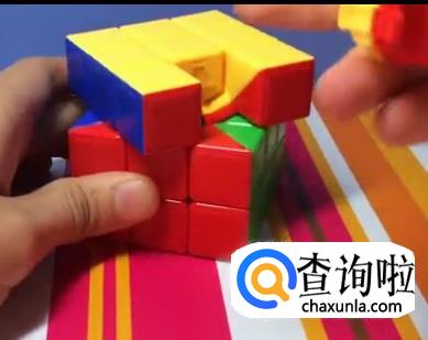 由于最后一个边角放不进去,可以考虑向将旁边的中间方块抠出,放入边角方块,后再塞入中间方块。
