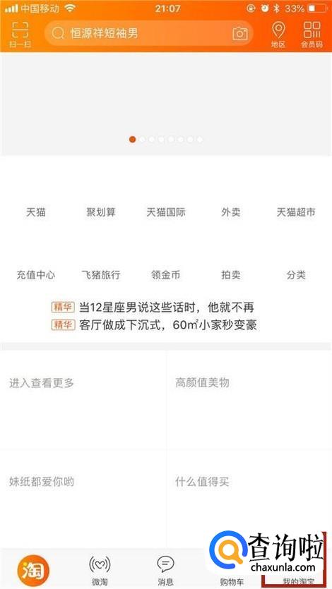 然后点击屏幕右下方的我的淘宝,如下图所示。