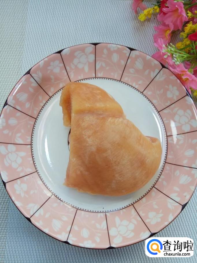 炒锅中放入适量油,油热后,将鸡胸肉放入锅中炒香。腌过的鸡胸肉,不用再放其他调料,看到鸡胸肉变色,就差不多。