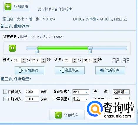 最后裁剪我们想要的歌曲片段并点击保存铃声就可以了。
