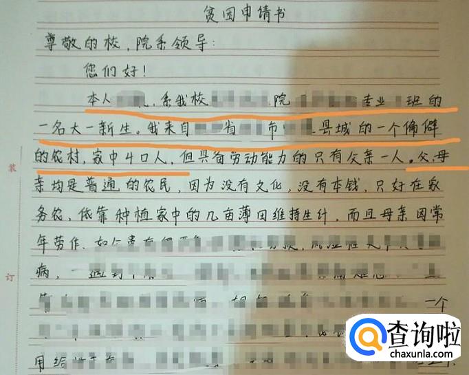 首先要在页面上方居中写下“助学金申请书、”作为题目,这六个字可以稍微写大一点,没有题目可能审查老师读半天都不知道你写的是什么。