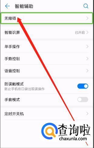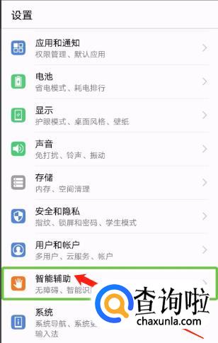 先点击设置,再点击“智能辅助”进入,然后点击“无障碍”。