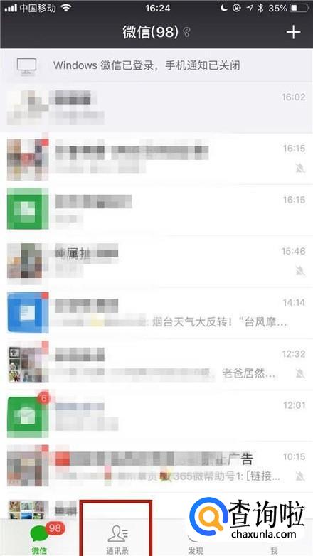 点击通讯录。