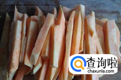 然后酥炸粉加盐然后混成糊状,把之前去生的地瓜条裹一下。