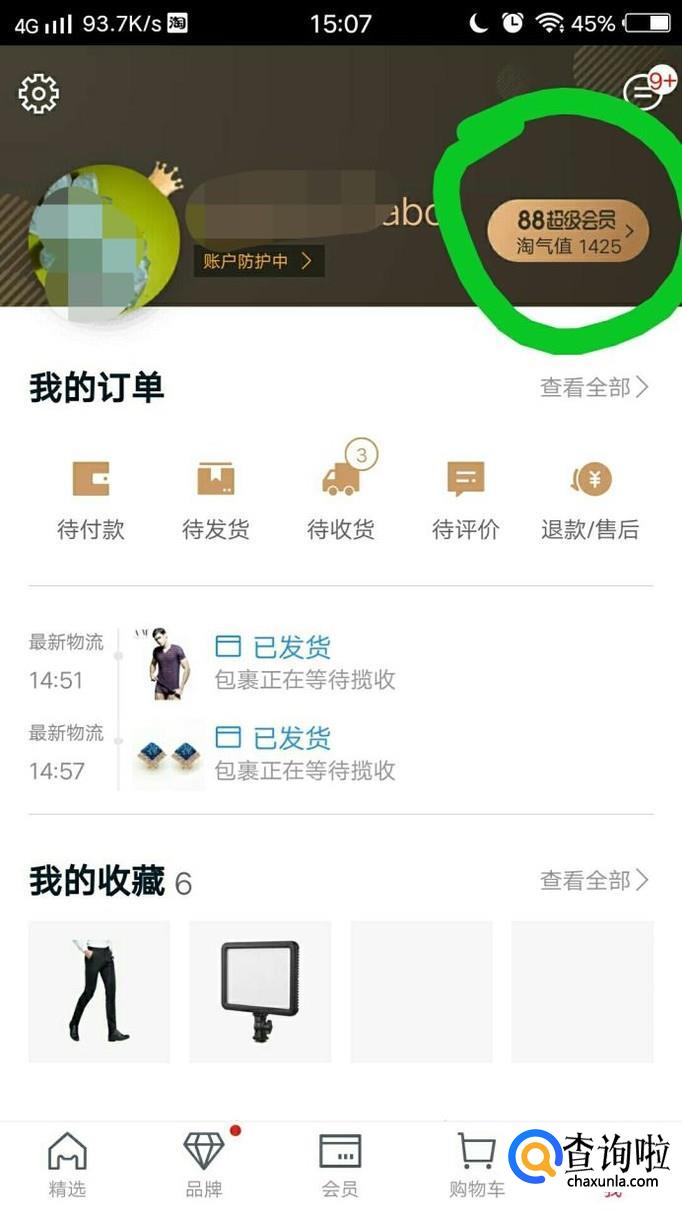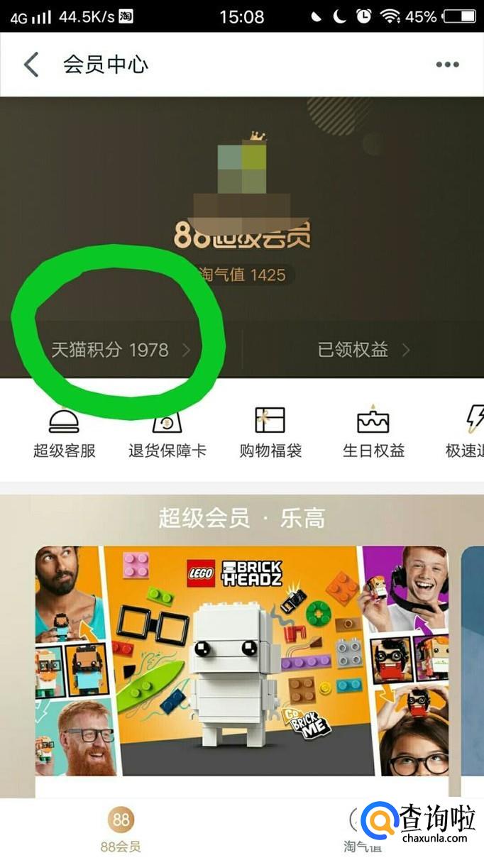 点击会员的标志,进入会员详情页面,就可以看到自己的天猫积分了。