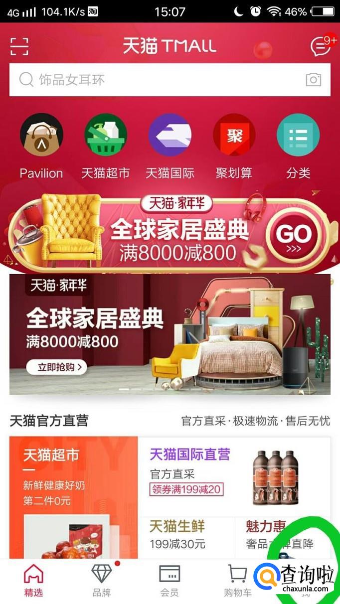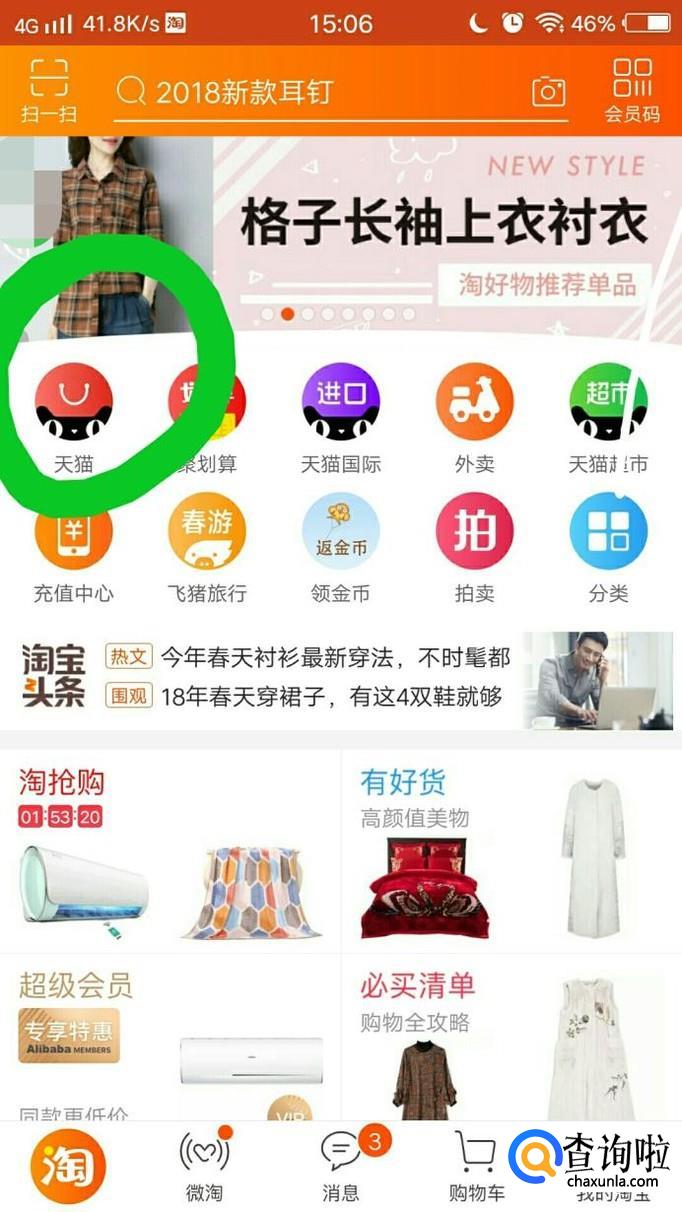 打开手机淘宝,在首页点击“天猫”,或者打开天猫app都可以。进入天猫主页后,点击“我”,进入“我的”页面。