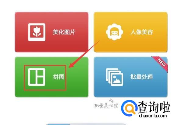 打开美图秀秀这款软件,在打开的界面内找到拼图选项,如图所示: